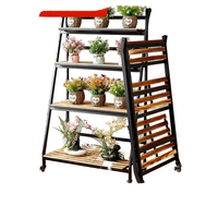 رف تخزين متعدد الطبقات متحرك بعجلات لحفظ أواني الزهور للاستخدام المنزلي مع سلم قابل للطي للشرفة وغرفة المعيشة